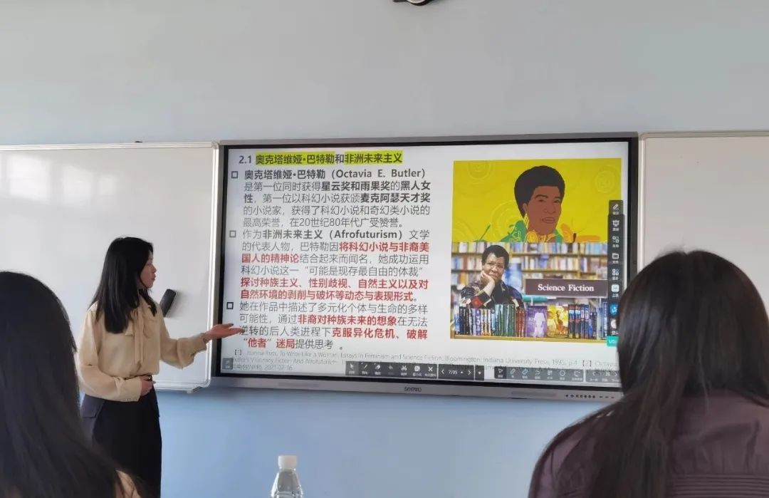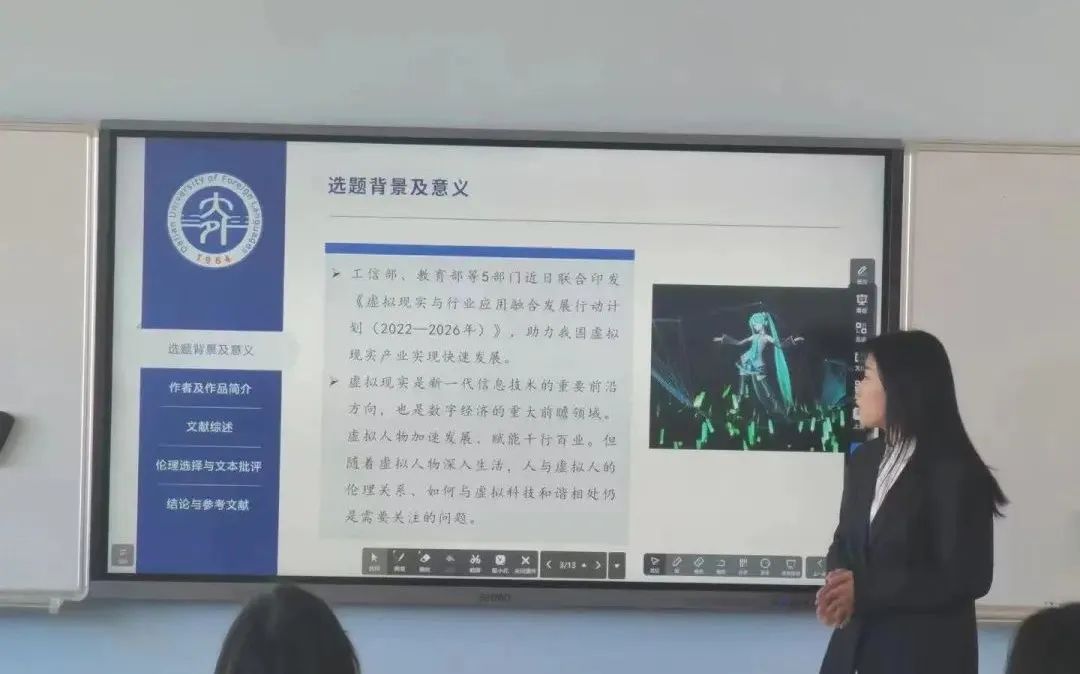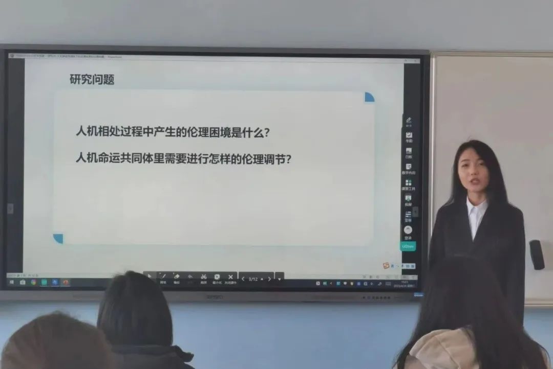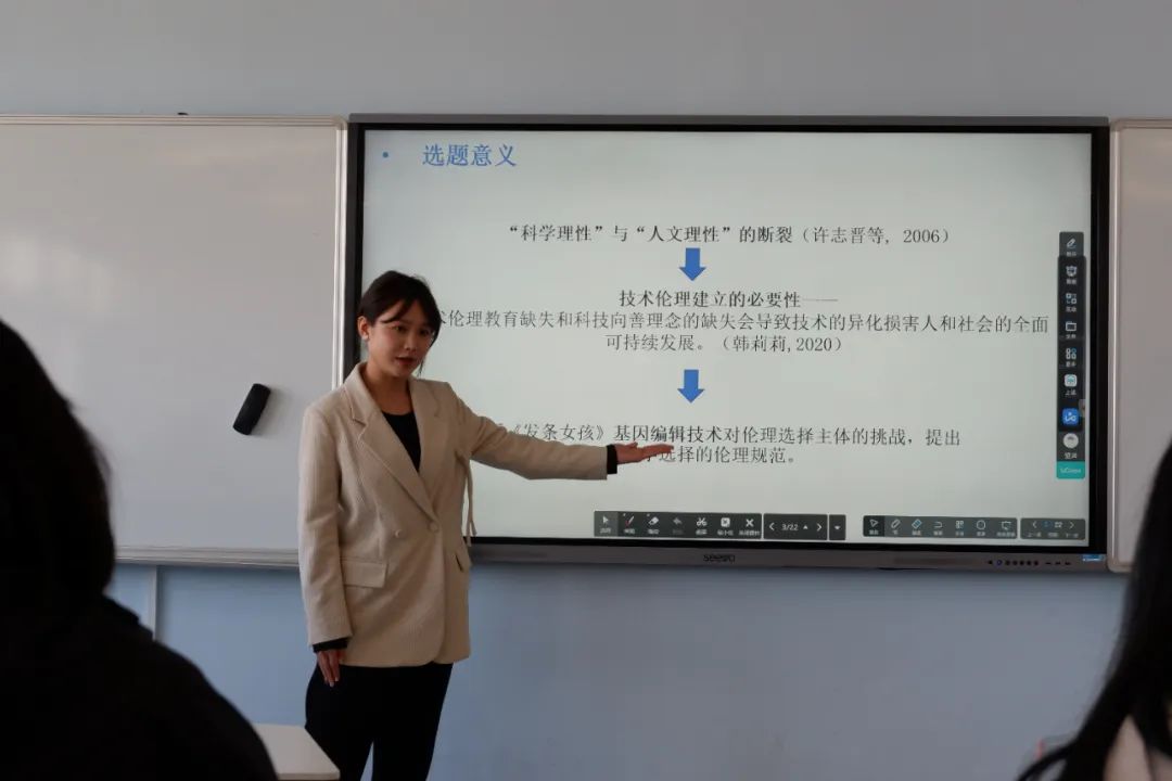 之后,三组参会同学进行专题发言及讨论。从《虚拟偶像爱朵露》到《野草在歌唱》,从生态伦理到科技伦理,同学们的发言异彩纷呈。