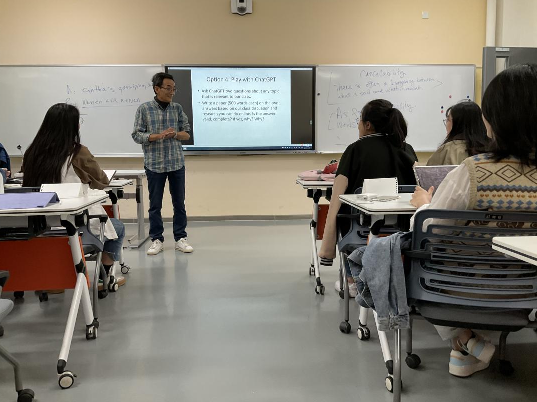 基于音系学、形态学、句法学、认知语言学、语用学五个方面,陈融教授系统讲解了语言学基础理论,从历时和共时角度分析语言的生成与演变、比较不同语言的共性与差异,同时探讨学科之间交叉融合的可能性。为了加深学生对理论的理解,陈融教授将经典理论与前沿研究相结合,并以生动有趣的实例积极引导学生参与互动,鼓励学生发表自己的观点与见解,从而更好地理解课程内容。