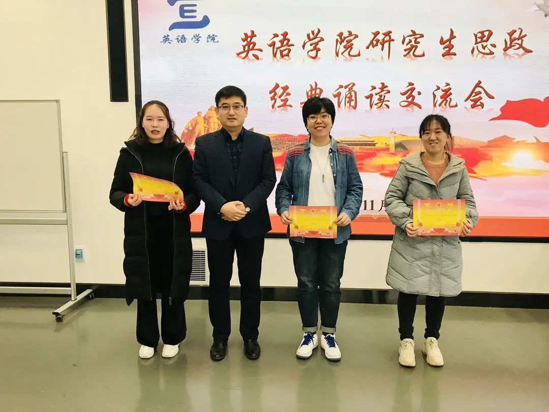 本次诵读交流会把握住了时代与学业相结合的正确方向,将思想政治建设与专业特色相融合,在加强同学们思想政治修养的同时,也充分锻炼了同学们的口语表达能力,此外还为同学们相互交流,相互分享搭建平台,提供机会。在此基础上,我院将进一步丰富活动形式,深入活动内容,真正做到促进研究生德智体美全方位发展,让英语专业的学生肩负起传播中国文化、推动中国文化“走出去”的使命和责任。