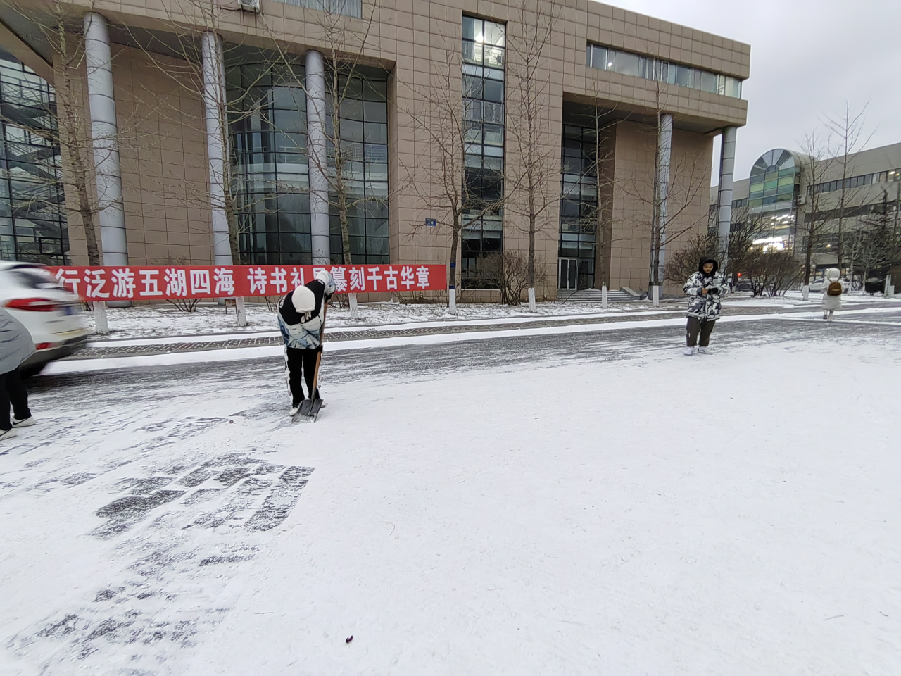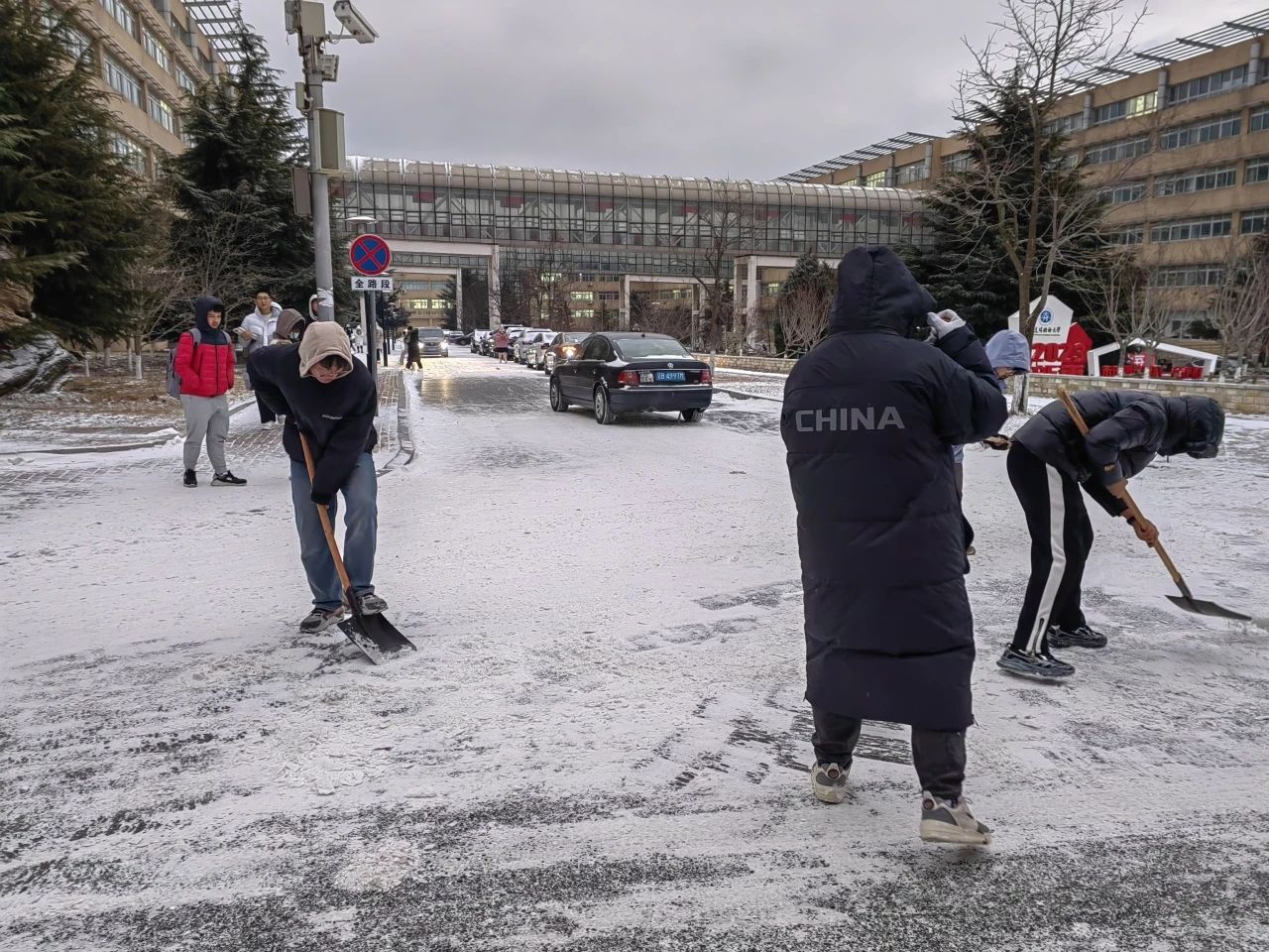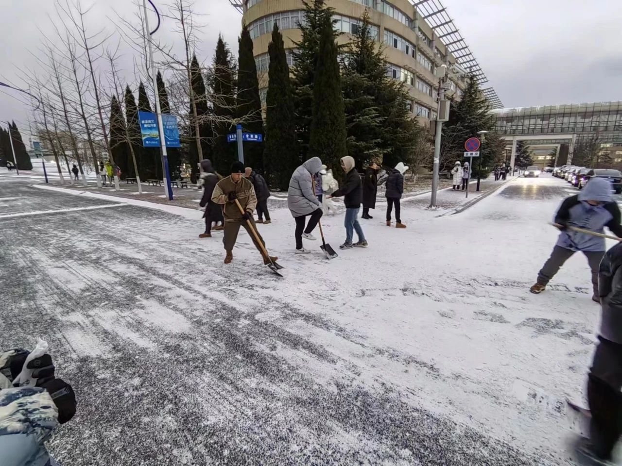 2023级学子积极响应学校号召,于12月11日开展扫雪活动。