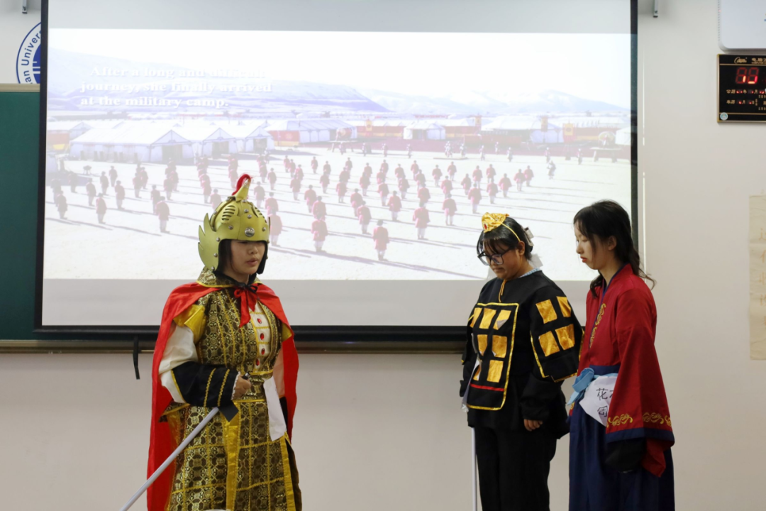随后,2022级8班为大家呈现经典剧目《花木兰》。紧凑的剧情是他们的风格,精致的服装和道具是他们的特色,他们的精彩表现展示出古代先民对和平的渴望与期盼。