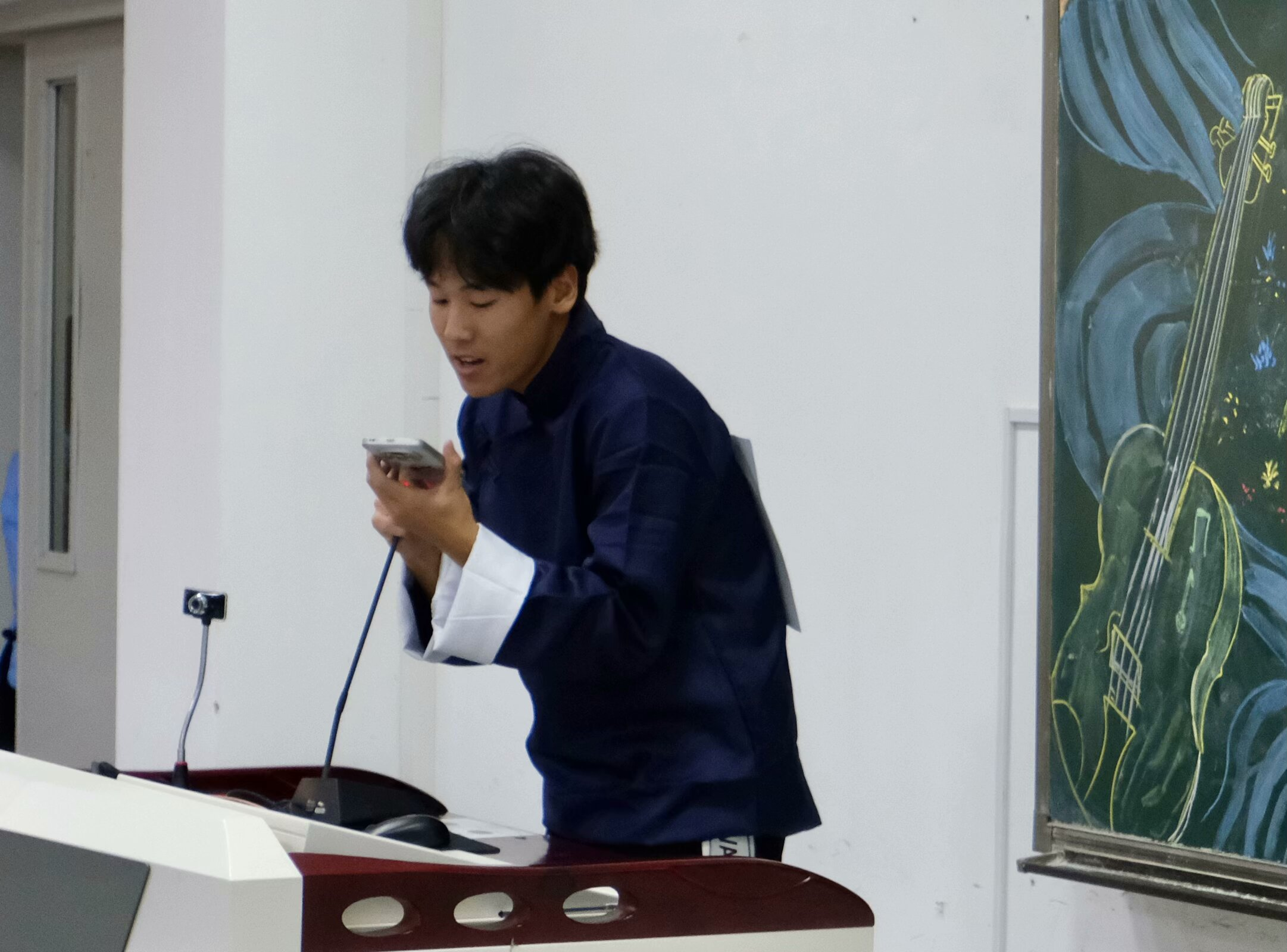 赛程过半,柳劲甫同学为大家带来暖场节目《修炼爱情》。悠扬的歌声唱响心中澎湃,让现场氛围更为热烈。