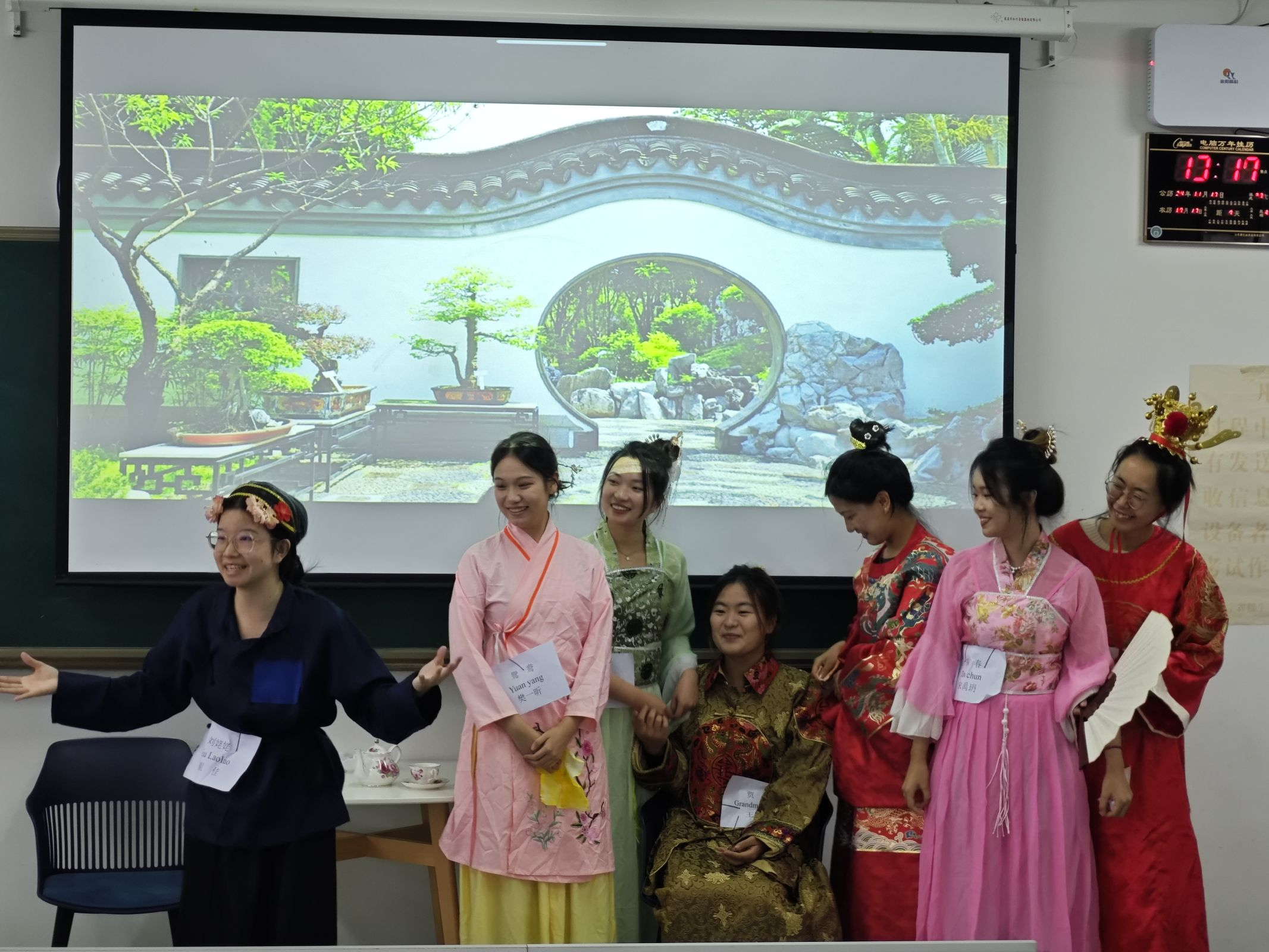 而后,2023级5班演绎了《红楼梦》中刘姥姥进大观园这一经典桥段,演员们生动地展现了刘姥姥初入大观园的种种趣事,幽默诙谐的扮相和精湛的演技逗得在场观众捧腹大笑 。