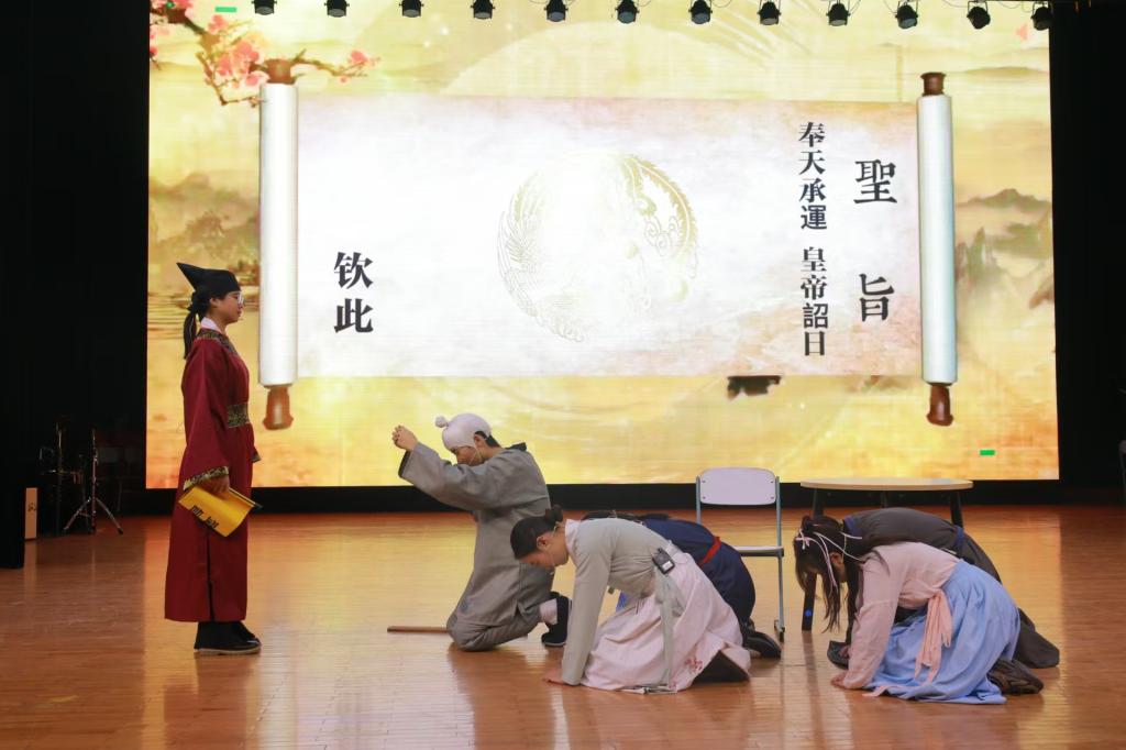 2024级剧组表演了经典剧目《花木兰》,该剧讲述了花木兰替父从军、克服艰难,凭借非凡的勇气与智谋立下赫赫战功的故事,展现出花木兰深明大义、坚毅勇敢的美好品质,同时体现出古代战争的残酷与高度的家国情怀,演员们以清晰的叙事、丰富的情感向这位心怀家国、勇于担当的巾帼英雄致以崇高的敬意。