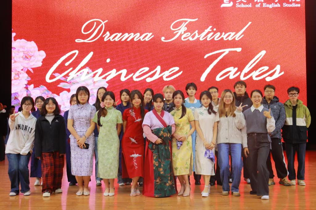 2022级剧组表演了经典电影《金陵十三钗》,故事发生在1937年饱受日军侵略的南京,讲诉了一群风尘女子们为保护受凌辱的女学生挺身而出,乔装打扮前往日军宴会,共赴悲壮死亡之约的故事。演员们真情流露、声泪俱下的表演,带观众们走进那段战火纷飞的岁月,目睹一部舍生取义、大义凛然的壮丽史诗。