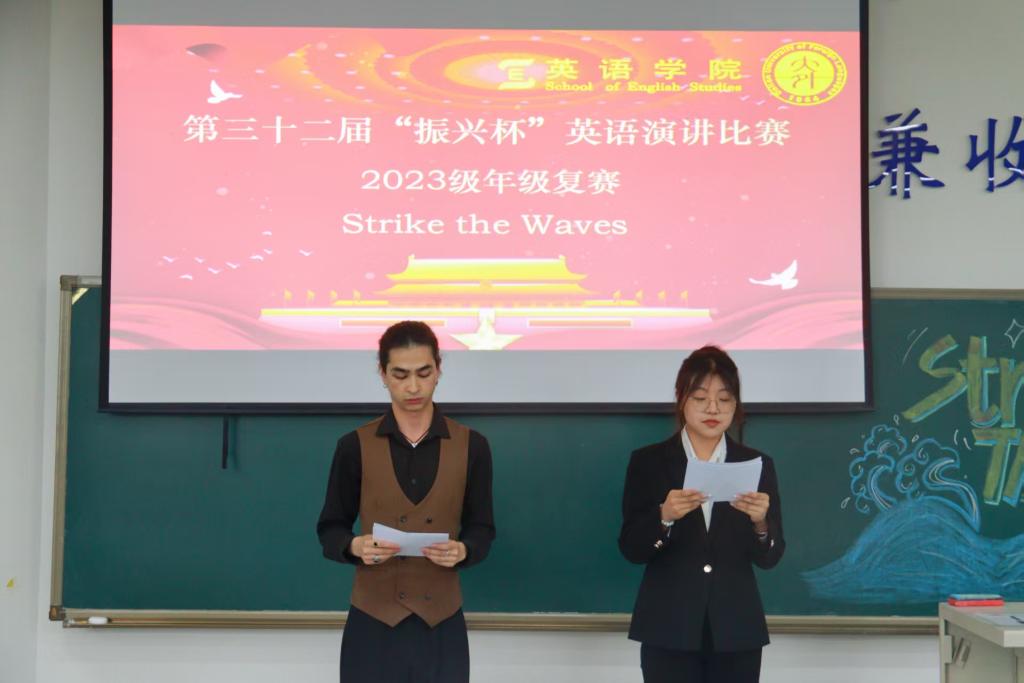 作为学院文化建设的璀璨名片,“振兴杯”英语演讲比赛始终以培养国际化视野与跨文化表达能力为核心,为学子搭建起彰显语言魅力与思想锋芒的优质平台。本届赛事以“Strike the Waves·击水中流,破浪前行”为主题,不仅点燃了同学们探索语言艺术的热情,更在思辨交锋中增强了文化自信,助力新时代英语人才实现语言能力与人文素养的双向提升。