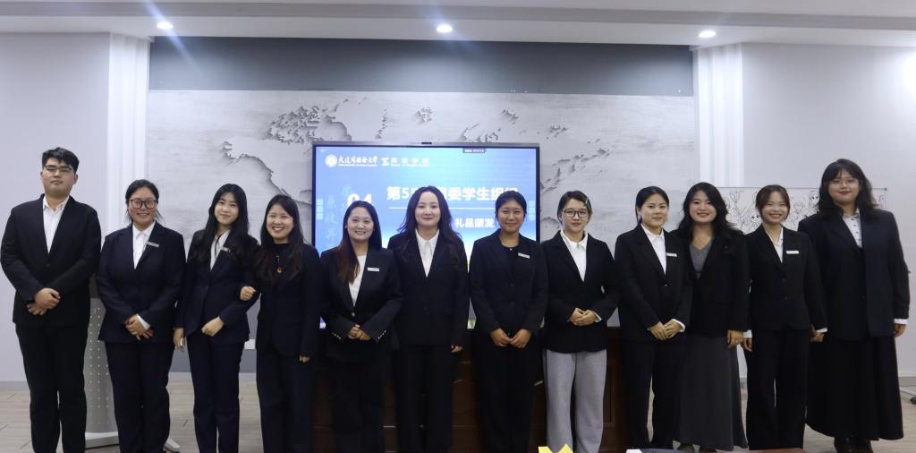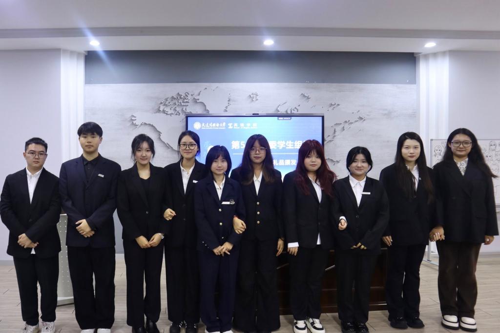 随后,曲镜达老师为第54届学生干部颁发聘书,第55届学生干部为其赠送纪念礼物并合影留念。在宣读新一届学生干部名单后,第54届学生干部为其佩戴名牌并合影留念。