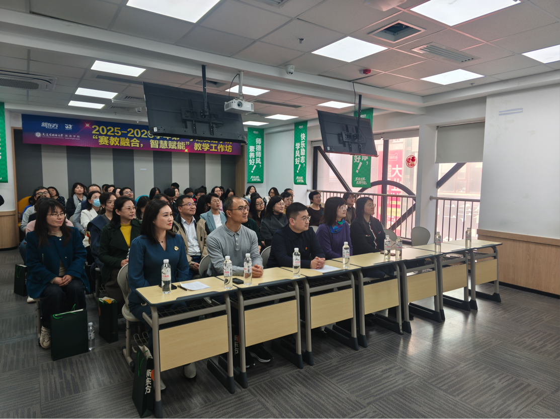 召开2025-2026学年第一学期“赛教融合,智慧赋能”教学工作坊暨英语专业虚拟教研室教研活动。工作坊由副院长罗俏鹃主持,全体教师参加。