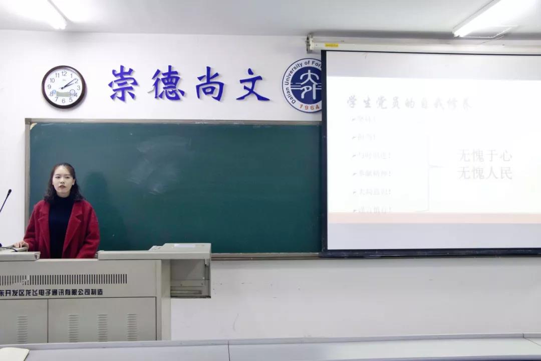 组织员汪霞担任本次党课第九讲主讲人,第十、第十一讲分别由优秀研究生党员代表、各年级优秀学员代表发言。