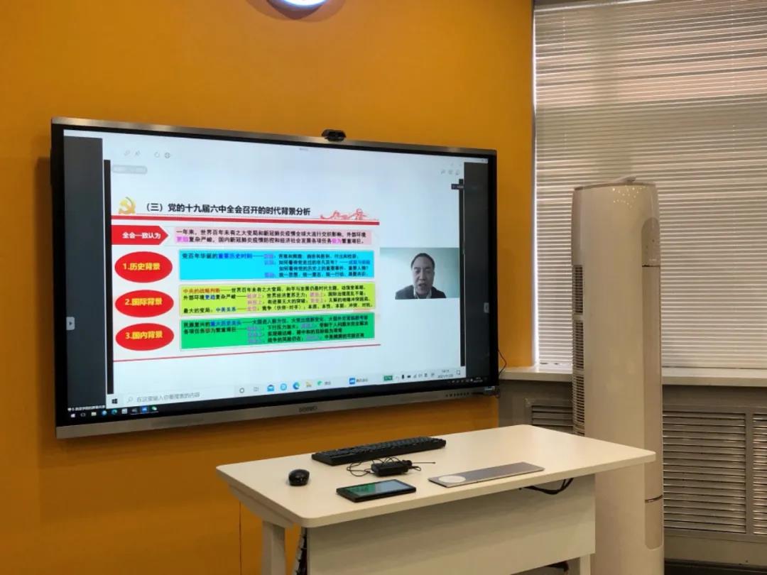 为了准确把握习近平总书记在党的十九届六中全会上的重要讲话和全会通过的《关于党的百年奋斗重大成就和历史经验的决议》的重大意义、丰富内涵、精神实质,学习总结党的百年奋斗创造的伟大成就和积累的历史经验,深刻认识新时代党的前进方向和历史使命,11月29日下午,疫情封校期间的在校学院领导老师和部分党员于励业楼VR实训中心集体观看“深刻学习领会党的十九届六中全会精神”公益直播。