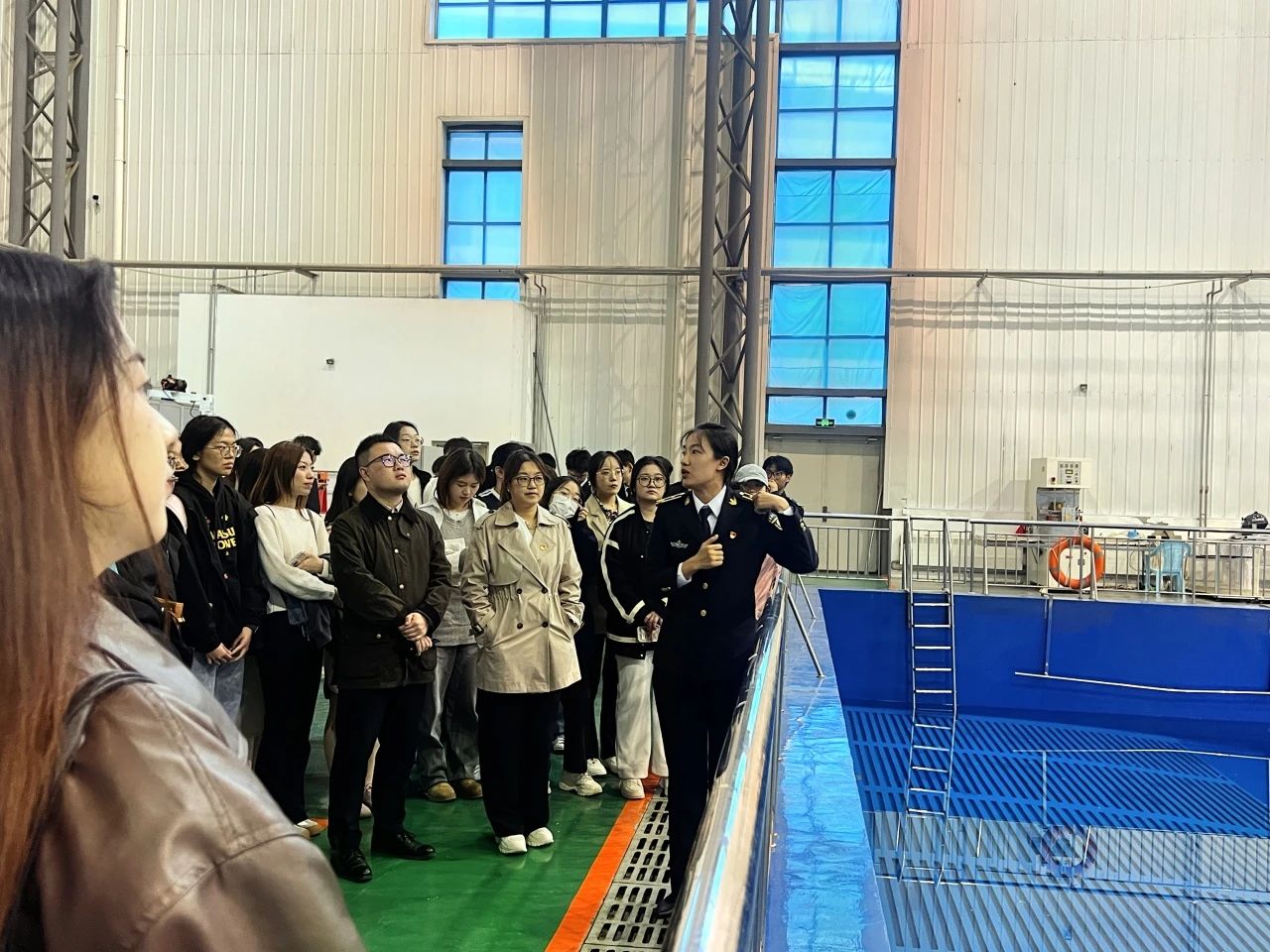 本科生第一党支部一行还参观了大连海事大学图书馆,并在半军管文化长廊观看了学校宣传片,深入了解大连海事大学的建校历史。在救捞实验室,船舶与海洋工程学院研究生学生党支部书记王宏诗为党支部成员讲解相关知识,并展示了实验室的运转过程。