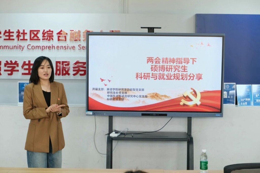 研究生功能型党支部联合研究生处党支部、中国东北亚语言研究中心党支部和科研处党支部,在综合楼 “一站式” 学生社区综合服务管理中心开展了以“两会精神指导下研究生科研与就业规划分享”为主题的党建活动。活动由快猫短视频