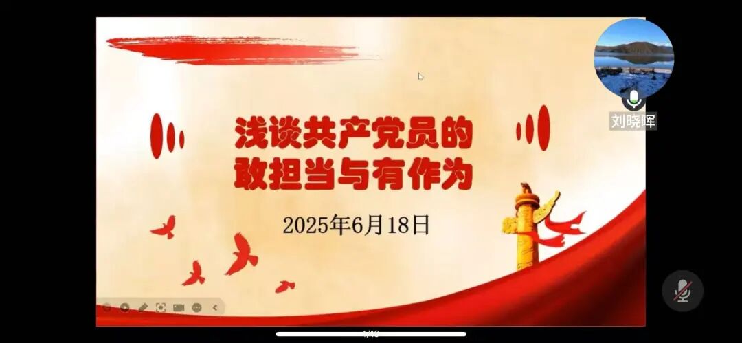 副院长刘晓晖带来了《浅谈共产党员的担当与作为》专题课程。刘院长以党的十九大报告为开端,向同学们展示了共产党员的担当情怀。她以名人名言为切入点,进一步阐述担当的多层内涵,揭示了其在个人成长、社会责任与时代使命中的核心价值。最后,刘院长讲述了青年担当作为的方法论,勉励全体同学精进学业,筑牢理想信念根基,厚植家国情怀与时代担当。