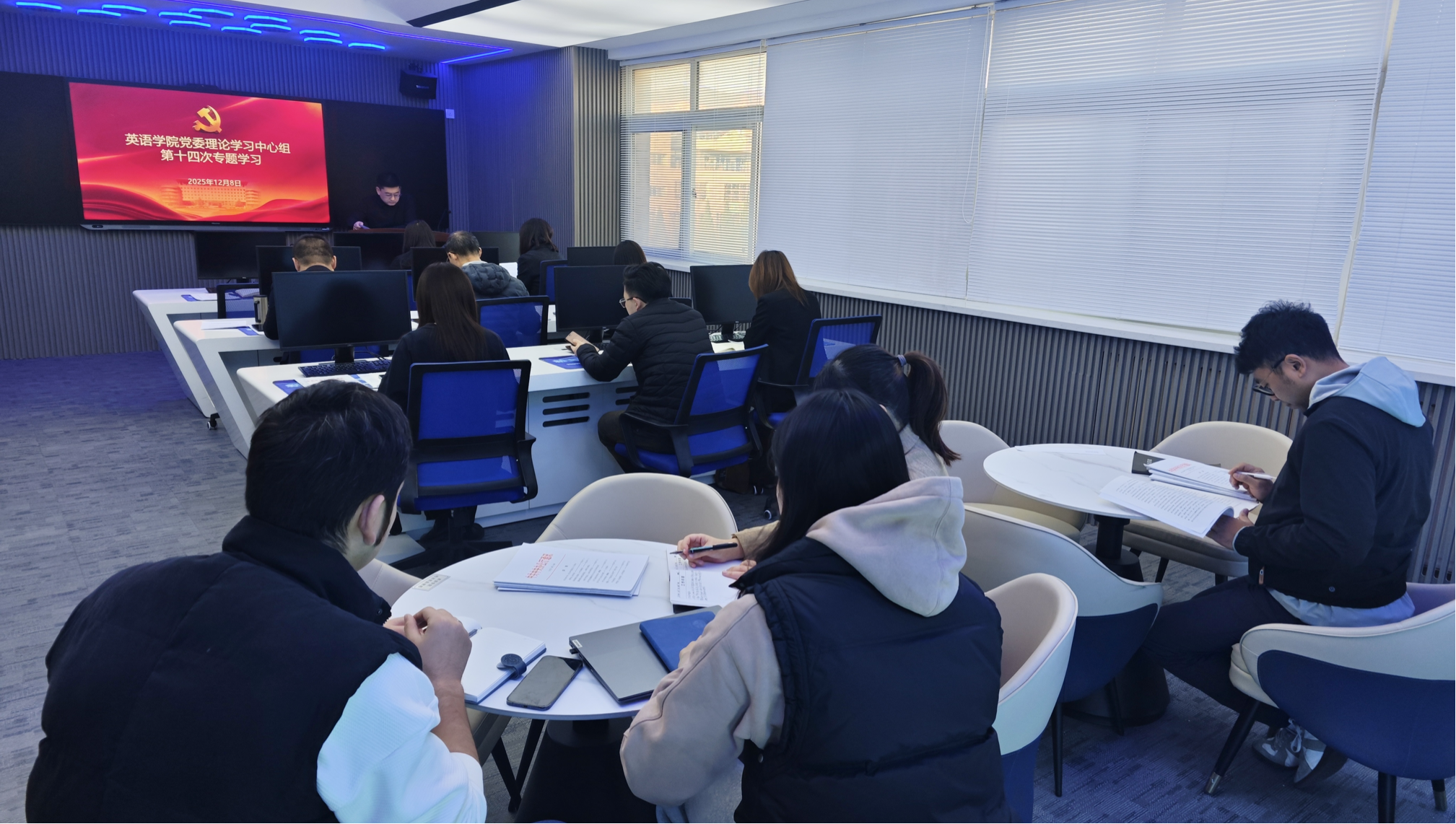 党委理论学习中心组开展落实“第一议题”制度专题学习。党委理论学习中心组成员、党委委员、组织员、各党支部书记和辅导员参加会议。学院党委书记梁若冰主持会议。