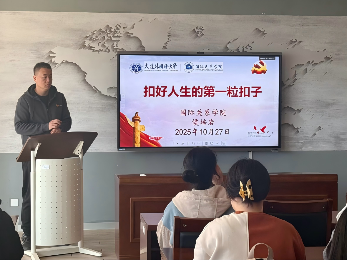 10月27日,国际关系学院团委书记侯培岩应邀为我院入团积极分子带来“扣好人生的第一粒扣子”主题团课。侯老师围绕青年成长起步阶段的方向校准展开分享,从理想信念的建立、个人品行的养成、责任意识的培养三个方面,结合青年学习生活中的实际场景,讲解了“扣好第一粒扣子”对人生发展的基础作用,引导同学们在学业与实践中明确方向、站稳立场,让入团积极分子们对青年成长的起步要点有了更清晰的认知。