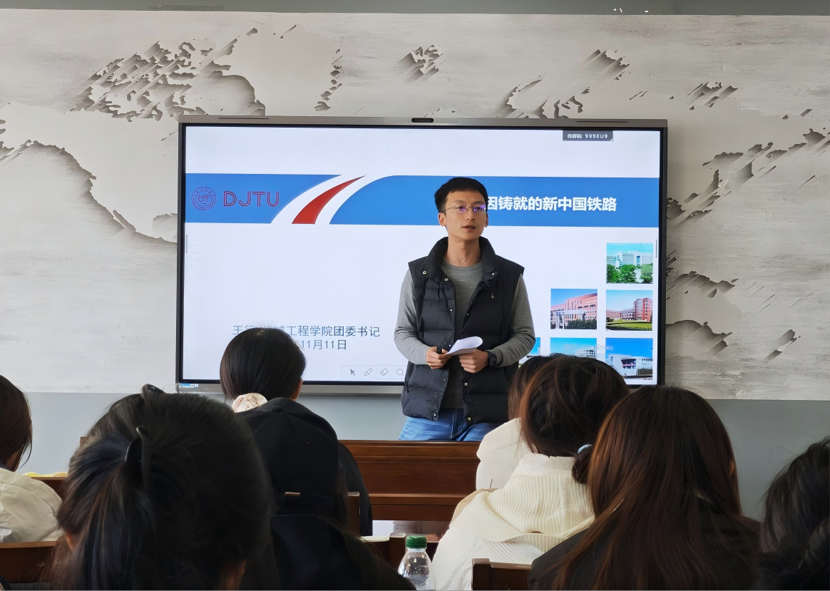 11月11日,大连交通大学机械工程学院团委书记王衍应邀为我院入团积极分子带来“红色基因铸就的新中国铁路”主题团课。王老师结合自身团务工作经历,以铁路发展为脉络,系统讲述了中国铁路从晚清路权抗争,到中华人民共和国成立后铁路网建设与“人民铁路为人民”精神的传承。王老师通过视频与数据重点展示了中国高铁的伟大成就,并分享了多位交大校友的卓越贡献,鼓励青年学子关注国家发展,树立行业自信。最后,他鼓励同学们坚定走中国特色社会主义道路,并欢迎快猫短视频