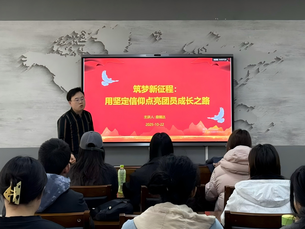团委书记曲镜达主持。曲镜达老师认真讲解团课的学习内容与课时安排,并表达了对入团积极分子坚定理想信念、提升自我涵养的殷切期望。他强调,入团积极分子们应用心投入学习,始终保持正确的人生观及向团组织靠拢的坚定意志。
