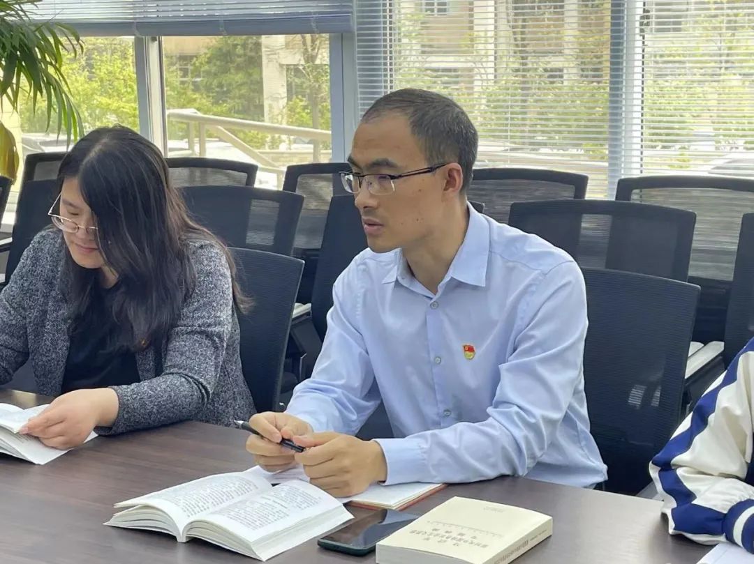 党委理论学习中⼼组在励业楼109会议室召开扩⼤会议,开展学习贯彻习近平新时代中国特⾊社会主义思想主题教育读书班第二期第四专题学习研讨。全体领导班子成员、党委委员、组织员、各⽀部书记和全体辅导员参加,会议由学院党委梁若冰副书记主持。