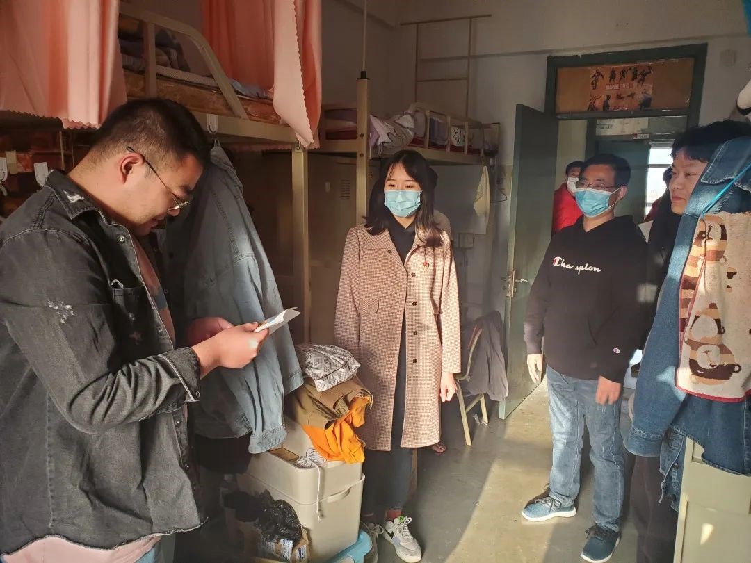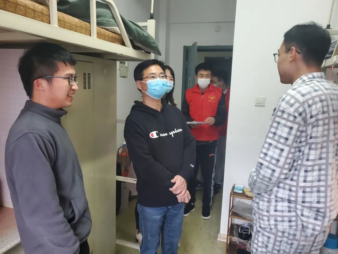 走访三日,校纪委副书记王冬梅与同学们亲切交流,听取网格化管理的及时反馈,同时叮嘱同学潜心科研的同时更要注重劳逸结合,积极关注自身心理和身体健康。曲院长走访时悉心解答大家线上学习和疫情生活中遇到的问题和疑惑,并且叮嘱研三的同学积极准备毕业答辩和就业面试工作,调整好心态,从容自信地面对。徐老师和黄老师提醒同学们注意勤开窗、多通风,空闲时间多参与体育锻炼。走访临近尾声之际,研究生团总支书记徐子湘同学代表全体研究生衷心感谢在校园疫情防控期间,学校、学院组织领导老师多次走访寝室,了解大家的生活、学习情况,为同学排忧解难,缓解心理压力。她在此也倡议各位学生党员,要在校园疫情防控期间,亮身份、树形象、争先锋、作表率,展现责任与担当,共克时艰,静待春暖花开。