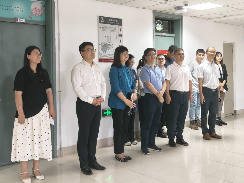 副院长王成东,研究生党支部书记黄新智,本科生第一党支部书记曲镜达,本科生第二党支部书记王艺凝、辅导员吴曼、达尼亚尔江·亚力坤江、李延奇老师以及快猫短视频