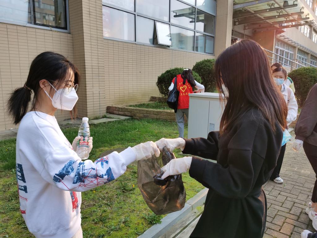 在前往励行楼途中,同学们随手捡起地上的垃圾,为校园的整洁美丽献出了自己的一份力量,充分将劳动思想教育转化到实际行动之中。