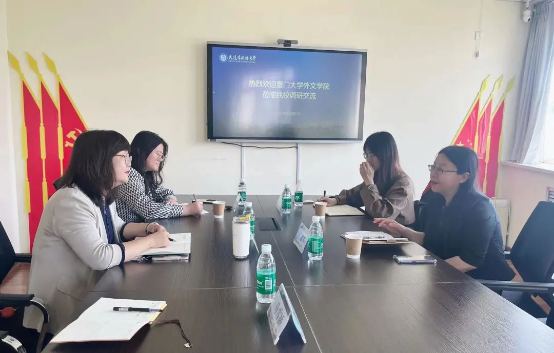 6 月 6 日上午,厦门大学外文学院副院长辛志英和研究生秘书唐祯一行莅临我院,就学科建设和人才培养开展调研。党委副书记兼院长吕春媚、副院长刘晓晖和研究生教学秘书马雪娇参加了交流座谈会。