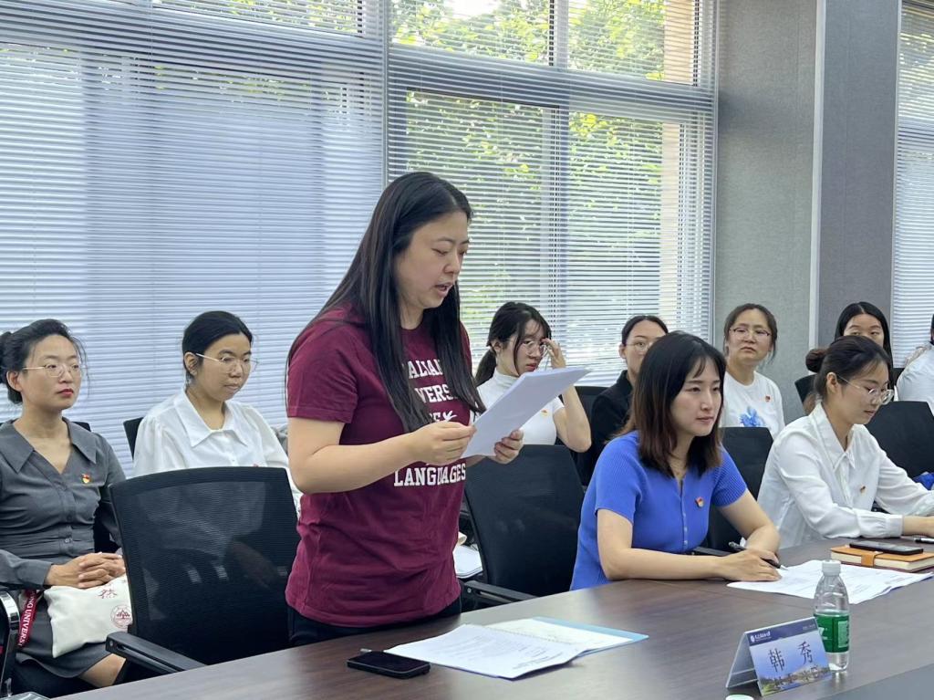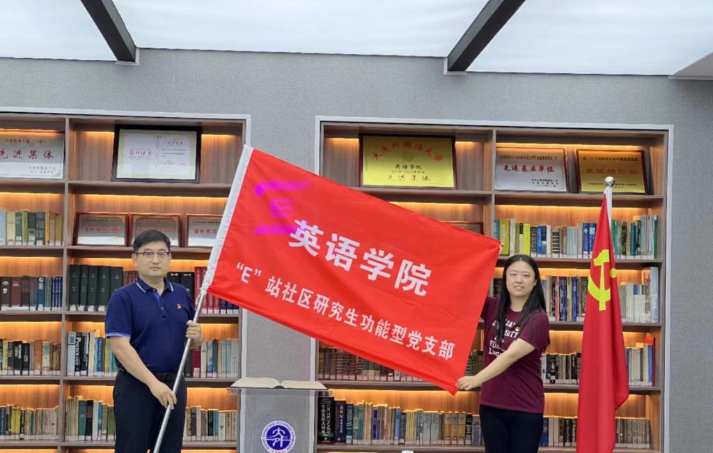 ‘E’站社区研究生功能型党支部的申请”,学院党委委员郭庆霞同志宣读对请示的批复,支部成员原宇迪同志针对“关于‘E’站社区研究生功能型党支部是什么、怎么做”进行发言,功能型党支部书记韩秀同志进行发言时表示,学生社区功能型党支部应当切实聚焦于学生学习和生活中的重点难点,带着服务下沉、文化浸润的使命与责任积极主动服务,助力学生公寓内的管理与建设。同时,她希望支部全体成员们能够以真心换真心,以党员担当在工作中奉献自己的青春力量。最后,学院党委副书记梁若冰为“E”站社区研究生功能型党支部授旗。