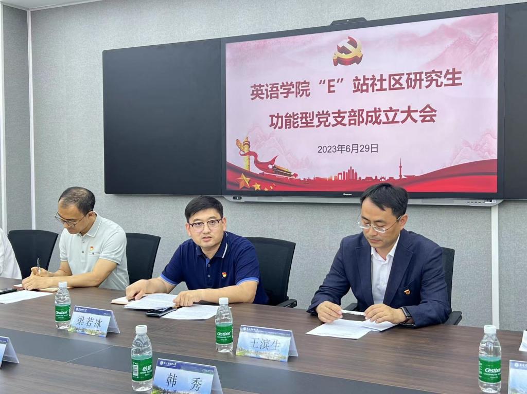 党委副书记梁若冰、教工第一党支部书记王成东、学院党委委员郭庆霞、“E”站社区研究生功能型党支部书记韩秀、本科生第二党支部书记王艺凝出席,研究生党支部以及功能型党支部成员参加。成立大会由学院研究生党支部书记黄新智主持。