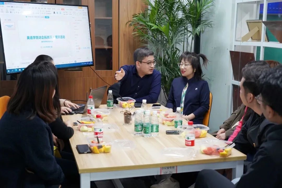 优秀校友朱楠向我院走访队伍的到来表示欢迎,同时分享了自己多年工作的所见所感,为我院的发展也提出了自己的建议。同时也希望借明年母校60周年校庆之时,回到母校看望昔日恩师和同学。最后,朱楠简要介绍了公司的发展历程和目前对于2023届毕业生的招聘岗位,希望能够吸引更多的大外毕业生加入公司,助力公司发展。