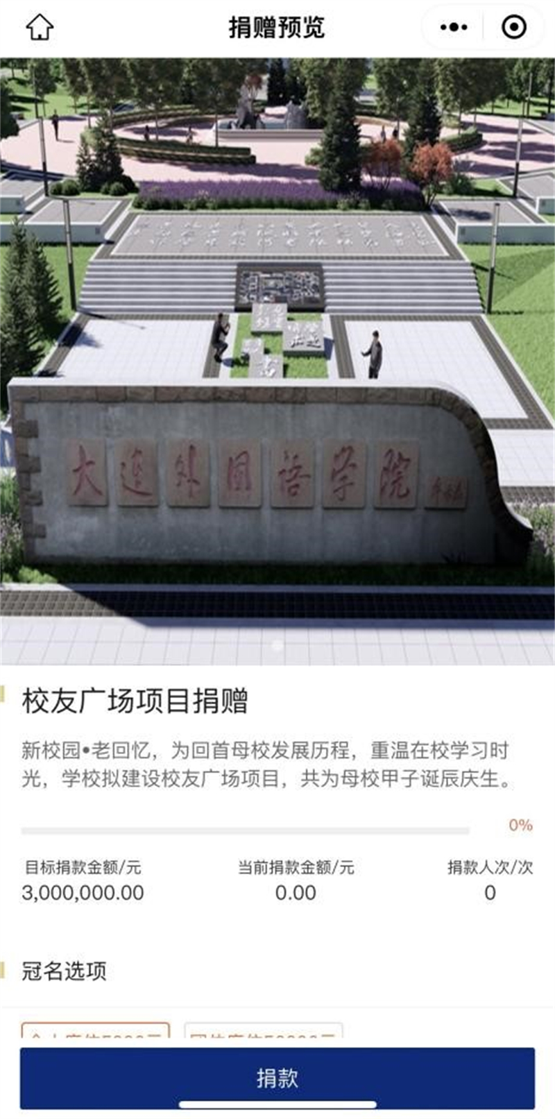 1.依托大外人小程序推出为庆祝母校60周年校庆捐赠项目;