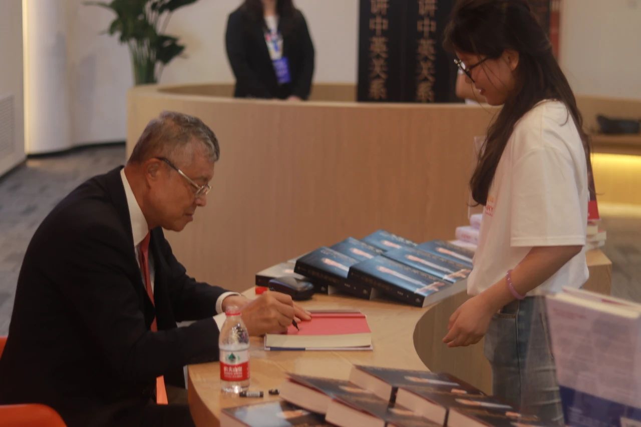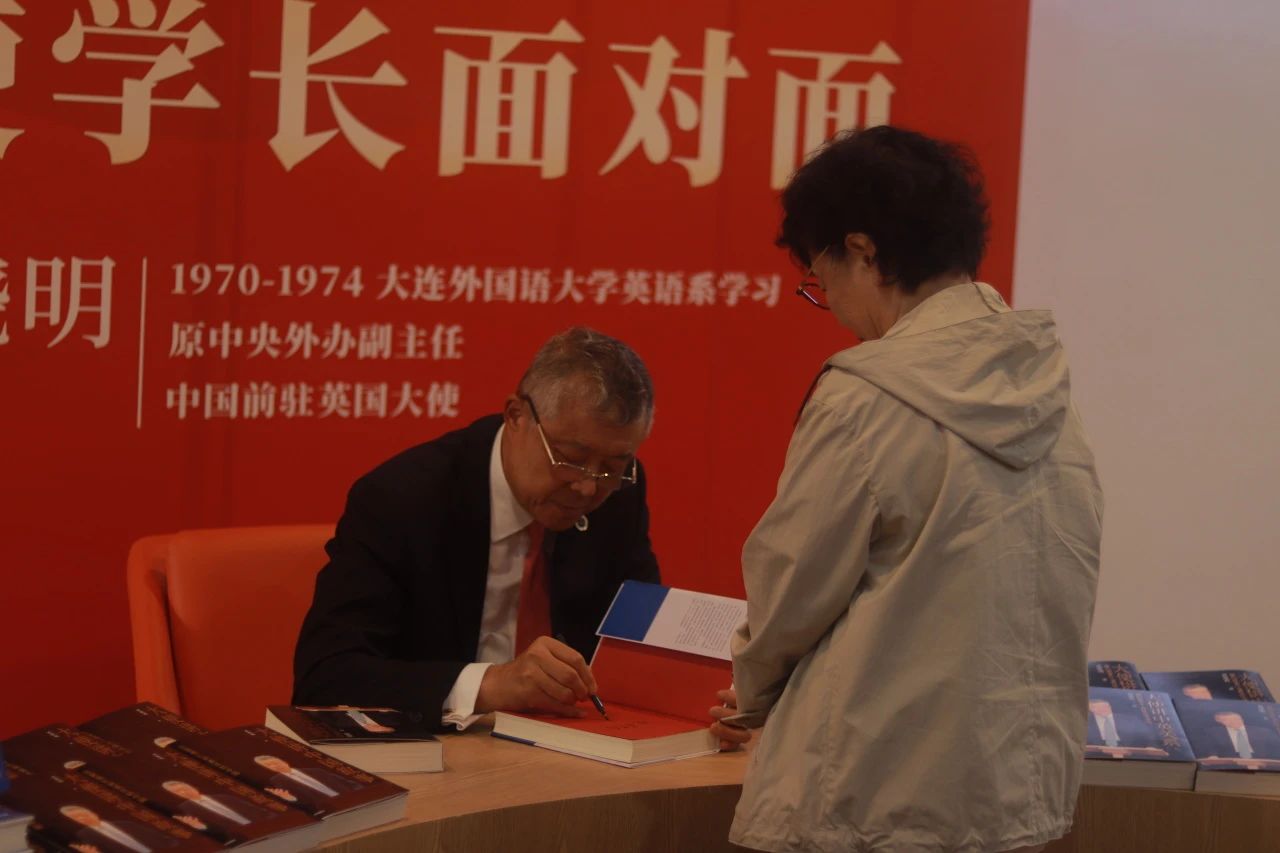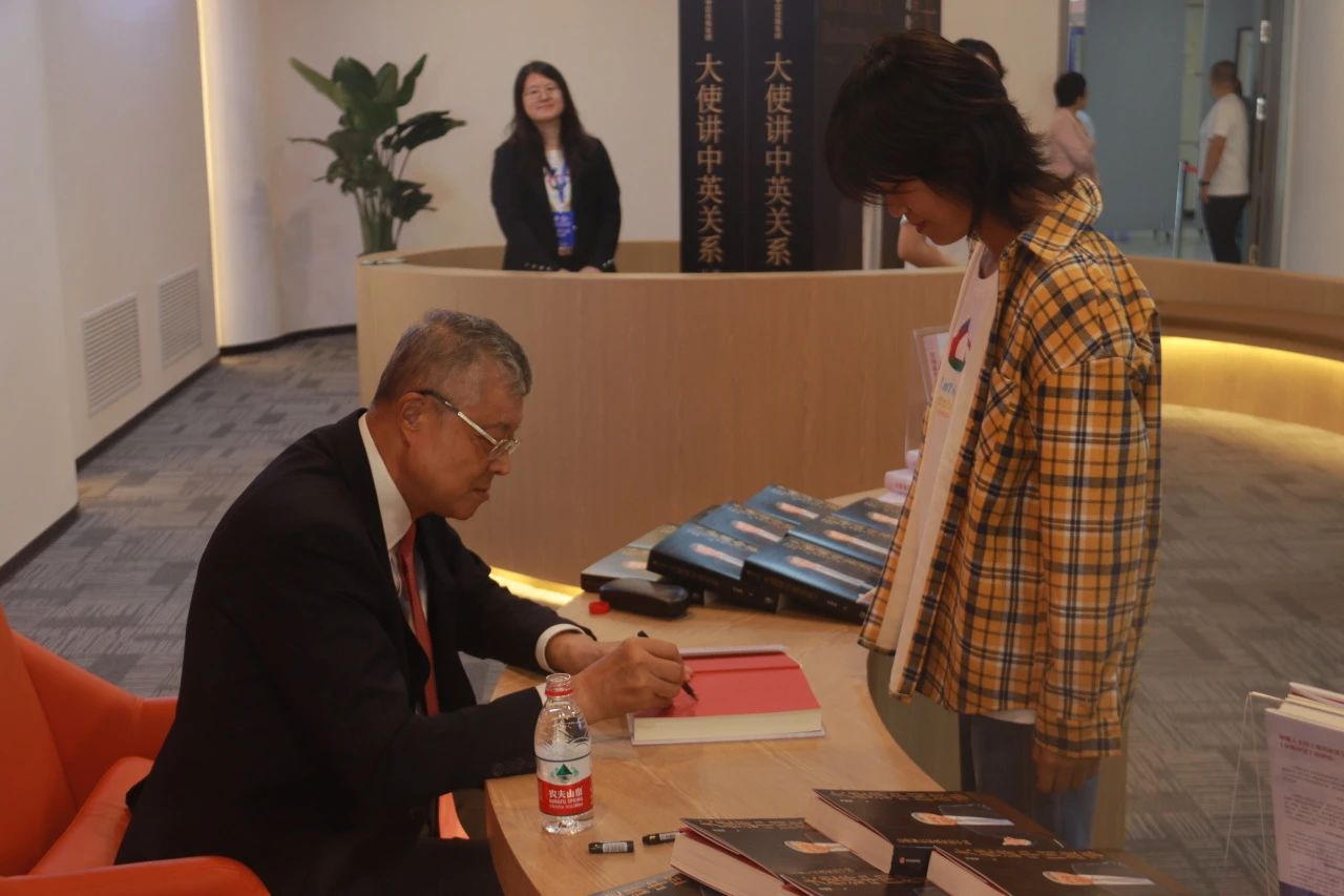 随后,刘晓明大使进行简短发言。大使强调,签名并非仅仅为了留念,而是希望同学们在阅读时能感受到一种精神上的陪伴与指引。大使还透露会继续出版新书,引导学弟学妹们在学术探索的道路上不断前行,为国家外交事业的繁荣发展贡献自己的力量。
