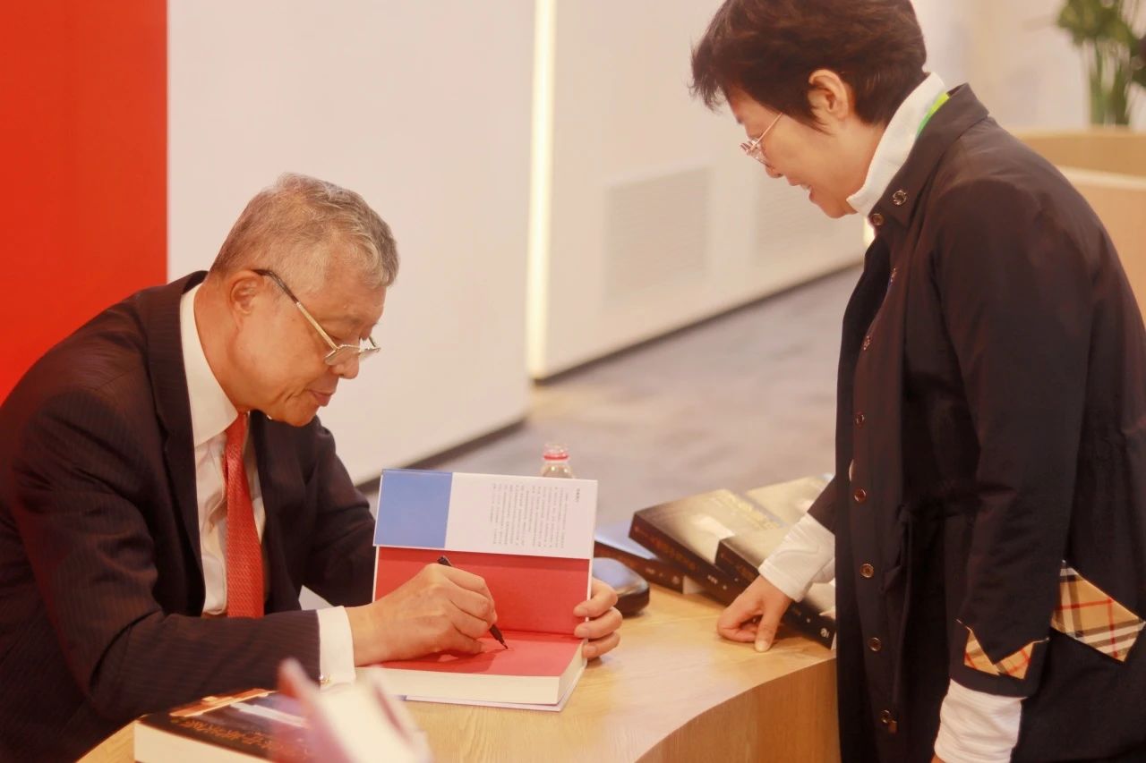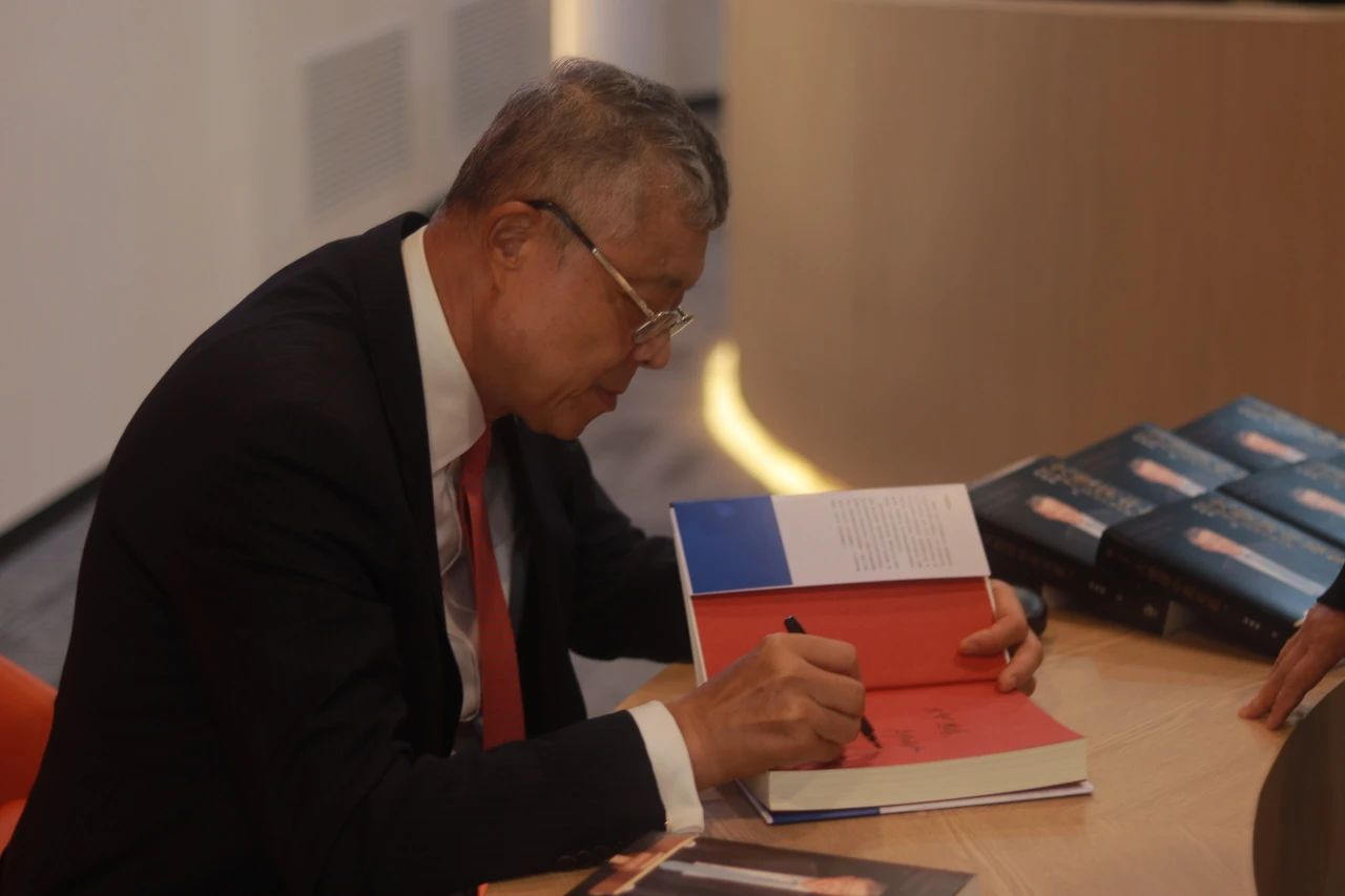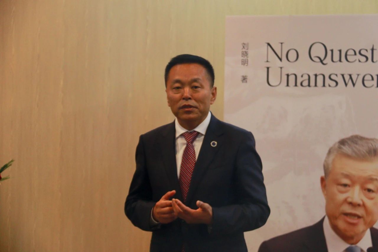 随后,刘晓明大使进行简短发言。大使强调,签名并非仅仅为了留念,而是希望同学们在阅读时能感受到一种精神上的陪伴与指引。大使还透露会继续出版新书,引导学弟学妹们在学术探索的道路上不断前行,为国家外交事业的繁荣发展贡献自己的力量。