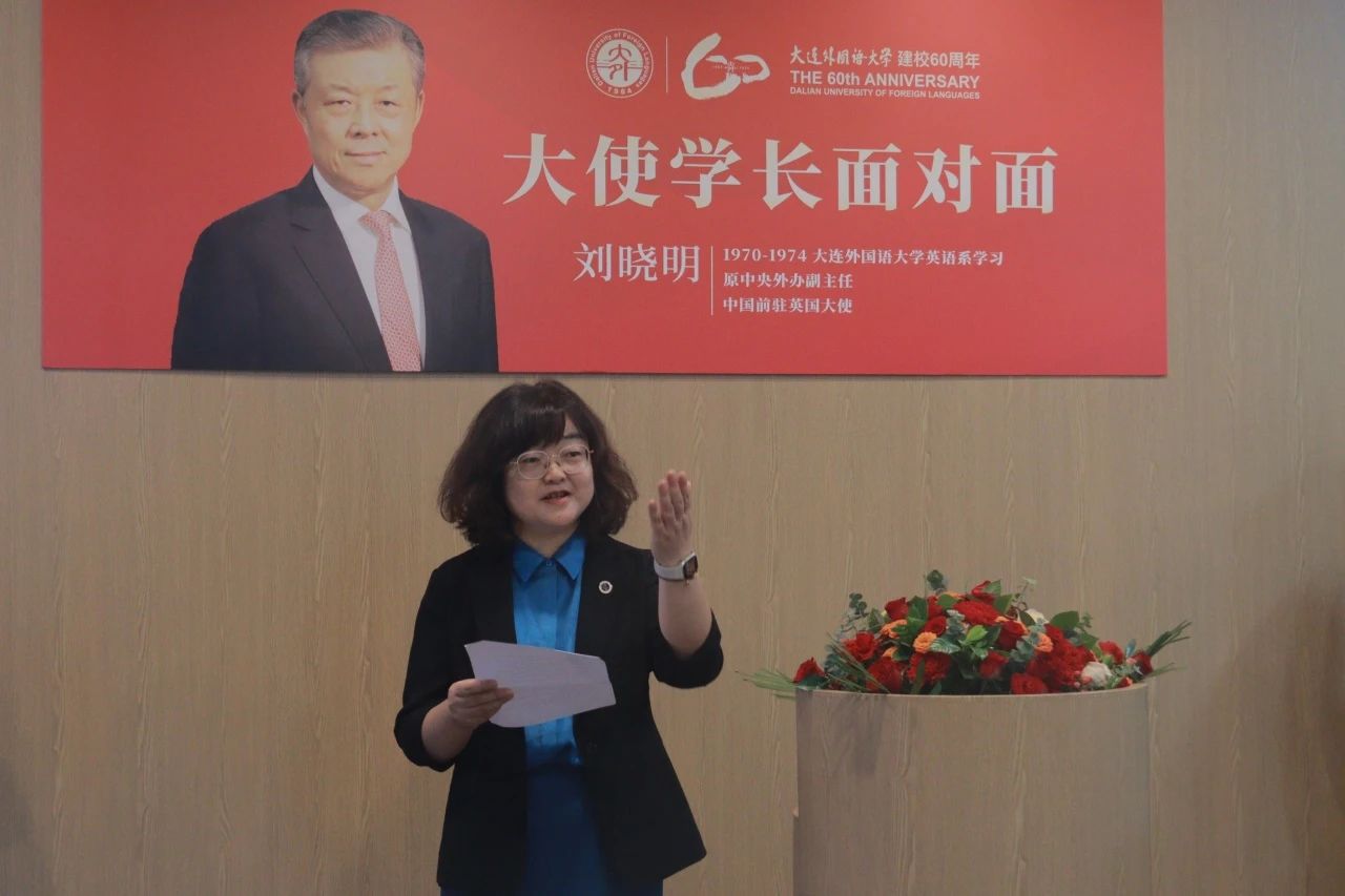 院长吕春媚主持。吕院长简要回顾了大外与晓明大使的深厚渊源,对大使的到来表示热烈的欢迎和衷心的感谢。随后,王书记致辞赞颂了刘晓明大使在外交领域的卓越贡献,并特别感谢大使慷慨捐赠的六百本著作,这些书籍将激励着一代又一代大外学子勤奋学习、追求卓越。