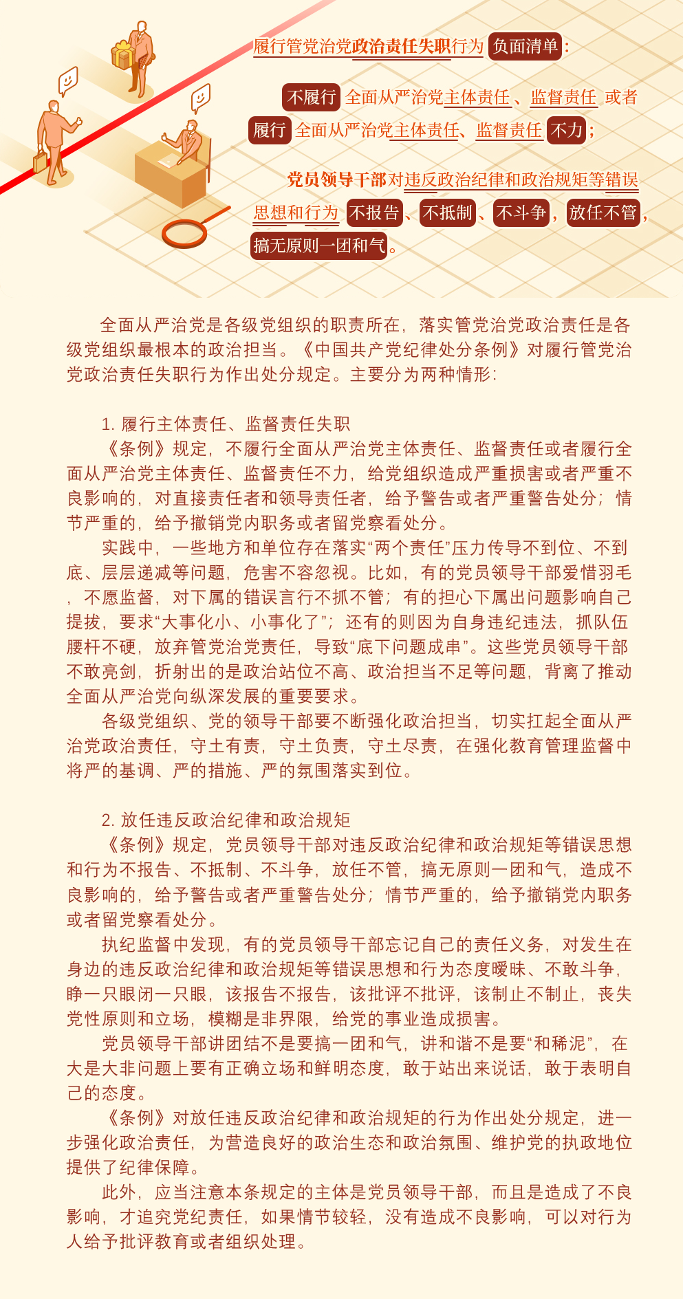党纪学习(二十一):关于履行管党治党政治责任失职的处分规定