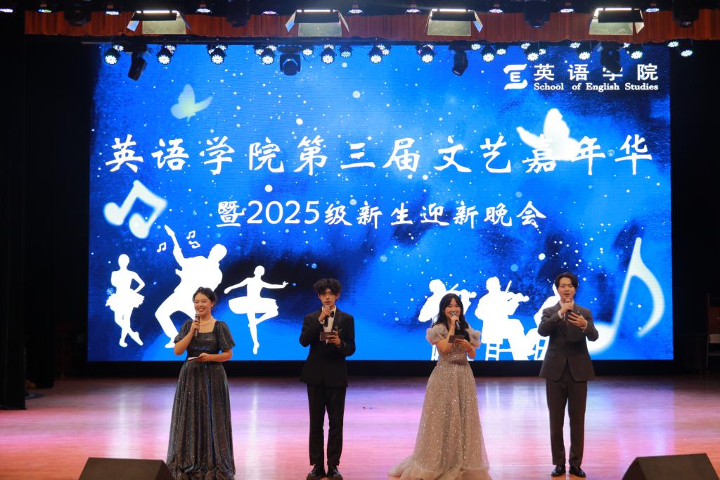 第三届文艺嘉年华暨2025级新生迎新晚会,不仅是一场视听盛宴,更是一场文化艺术的交融和熏陶,生动展现了英院学子的艺术才情与思想活力。希望英院学子们以此为新的起点,始终保持对生活的敏锐和对艺术的感知,在未来的人生舞台上大放异彩,在青春旅途中留下浓墨重彩的一笔。